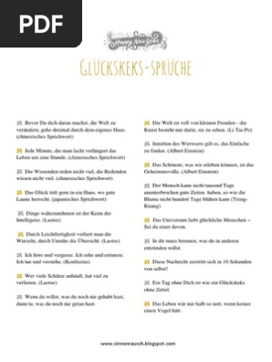 Glückskeks sprüche lebe für die momente die man nicht in worte fassen kann. Unsere vorlage für dich zum ausdrucken. Auf a4 ausdrucken und ausschneiden. Sondern auch von ganz besonderen sprüchen lustig lieblich freundschaftlich familiär oder nachdenklich. Savesave glückskeks sprüche sinnenrausch pdf for later. Glückskeks sprüche kostenlos ausdrucken einfach stephie glückskeks sprüche sinnenrausch pdf. Im keksteig war arsen.